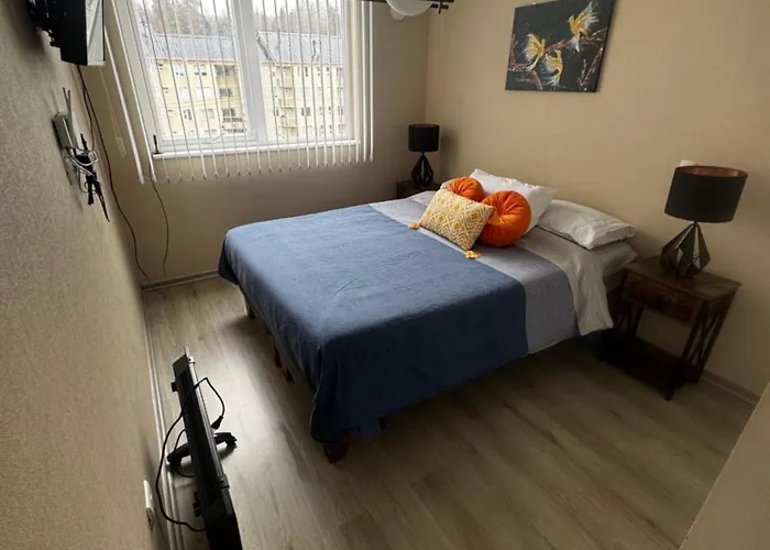 The accommodation features a balcony and a place for dining and is furnished with a sofa. With a flat-screen TV with satellite channels available, the property allows guests to enjoy their leisure time to the fullest. Beds fitted with down-feather pillows are at guests' disposal. To ensure your comfort, a bathtub are provided at this apartment.